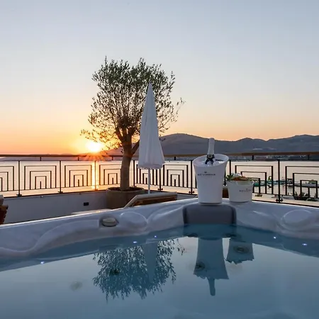 Plážový apartmán Luxury Penthouse Okrug Beach nabízí výhled na moře a řadu zařízení, jako parkování na soukromém parkovišti zdarma, jacuzzi a vnitřní dvůr. Mezi oblíbená místa v oblasti patří Trogirský přístav nacházející se 350 metrů daleko, a Kostel sv. Theodora v blízkosti ubytování.